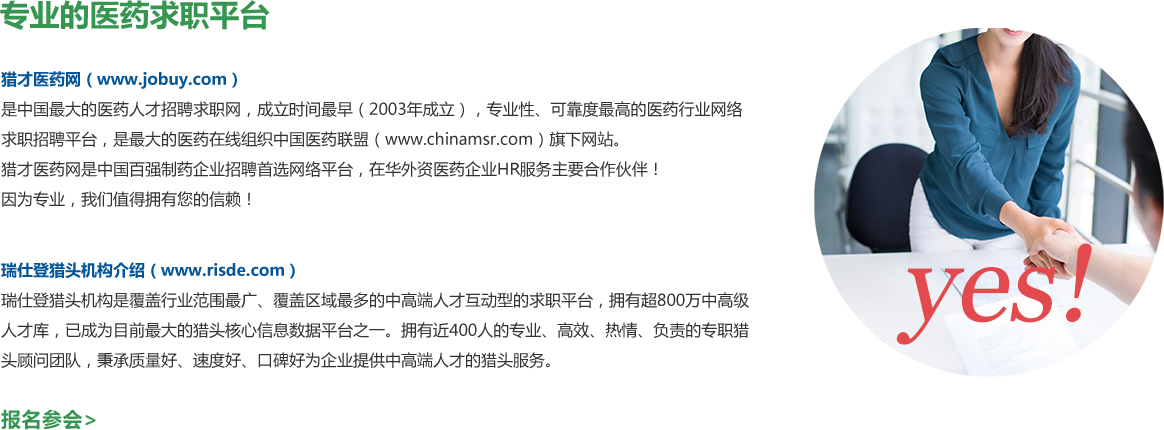 獵才醫(yī)藥網(wǎng)專注醫(yī)藥人才服務(wù),提供專業(yè)醫(yī)藥人才招聘及醫(yī)藥獵頭服務(wù),服務(wù)熱線:400 680 2998 劉經(jīng)理