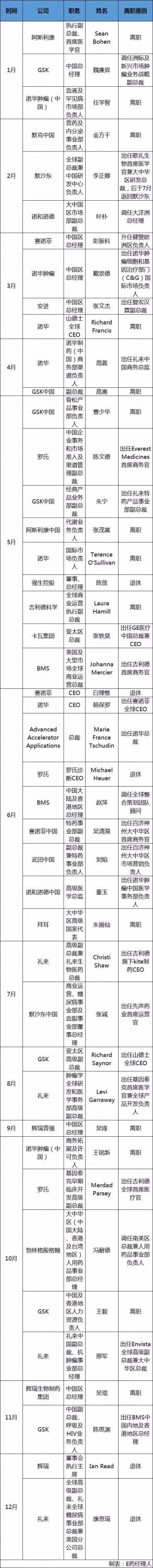 2019年跨國藥企人事變動情況