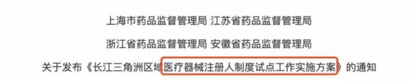 據(jù)悉,該舉措是按照國家藥品監(jiān)督管理局《關于擴大醫(yī)療器械注冊人試點工作的通知》的要求來進行,以長江三角洲區(qū)域醫(yī)療器械產(chǎn)業(yè)一體化。