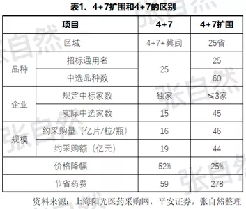 所謂“4+7”擴(kuò)圍,即將在4+7城市招標(biāo)的25個品種,拿到4+7及福建、河北之外的全國剩余25個省進(jìn)行招標(biāo)。