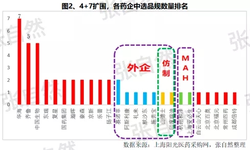 隨著4+7試點經(jīng)驗的廣泛推廣,作為4+7基礎(chǔ)的一致性評價,在新的階段又有了新的含義,通過一致性評價的廠家越少甚至獨家通過一致性評價才越有競爭優(yōu)勢,到本月上旬,復(fù)星、華海、齊魯?shù)确謩e有7個和6個品種獨家過評。