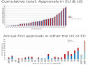 國(guó)際抗體學(xué)會(huì)(The Antibody Society)近日發(fā)表文章,對(duì)抗體領(lǐng)域的新藥研發(fā)進(jìn)展進(jìn)行了分析。根據(jù)文章,自1986年首個(gè)抗體藥物獲批上市以來(lái),在美國(guó)和歐盟,截至目前已分別累計(jì)批準(zhǔn)了84個(gè)和78個(gè)抗體藥物。
